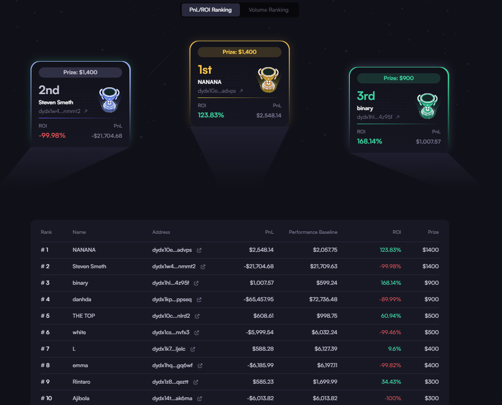 Hosted by Jammin123, the Jammin Community Trading Competition was a landmark event for the dYdX Trading Arena. The record-shattering $186 million in volume demonstrated the immense engagement that community leaders can bring to the ecosystem. The dual-prize structure successfully celebrated different forms of market participation, providing valuable insights into trader strategies during volatile conditions.